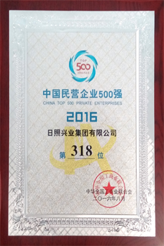 ·2016年8月,興業(yè)集團列“中國民營企業(yè)500強”第318位