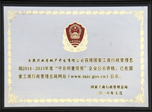 ·2016年7月,興業(yè)房產(chǎn)獲得國家工商行政管理總局2014-2015年度“守合同重信用”企業(yè)公示資格。