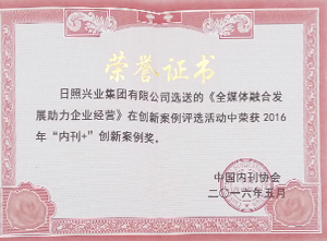 ·2016年5月,興業(yè)集團選送的《全媒體融合發(fā)展助力企業(yè)經(jīng)營》在創(chuàng)新案例評選活動中榮獲2016年“內刊+”創(chuàng)新案例獎