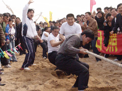 2006年5月1日,第二屆運(yùn)動(dòng)會(huì)拔河比賽在萬(wàn)平口沙灘舉行。 |