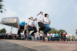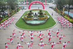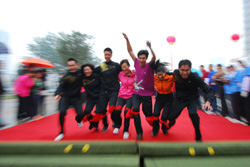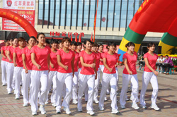2013年9月28日,第九屆職工運(yùn)動(dòng)會(huì)在興業(yè)財(cái)富廣場(chǎng)舉行,圖為社區(qū)中老年文體活動(dòng)俱樂部精彩的開幕式表演。 |