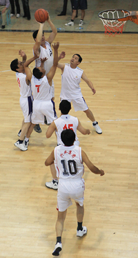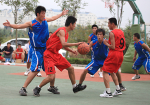 在比賽過程中各支代表隊都發(fā)揮出了極高的水平,為觀眾奉獻了一場場精彩的比賽。尤其在9月20日上午的交叉賽中,興業(yè)汽配代表隊與天泰鋼結(jié)構代表隊勢均力敵,比賽中雙方比分交替上升,離結(jié)束還有不到20秒時,汽配代表隊61:58領先3分并持有球權,此時汽配隊員的心理感覺穩(wěn)操勝券,一個不經(jīng)意的走步把球權送給對手,離結(jié)束不到2秒,鋼構中鋒馬沖順勢強攻,一記精準的3分遠投, 將比分追成61平,使比賽拖進加時。在加時賽中,汽配中鋒崔冰連續(xù)中投得手,興業(yè)汽配代表隊最終以73:65的比分完勝鋼構,躋身本屆籃球比賽的冠、亞軍決賽。因為天氣原因,9月20日下午的半決賽、決賽和驥翼組籃球表演賽改在日照一中室內(nèi)籃球場舉行。半決賽、決賽異常激烈,特別是在興發(fā)和汽配之間進行的決賽,展示了興業(yè)集團籃球的實力和水平,興發(fā)隊員們一次次嫻熟的配合,一個個精彩的扣籃,不時獲得現(xiàn)場觀眾的陣陣喝彩和掌聲。集團驥翼隊與興發(fā)驥翼隊的籃球表演賽同樣上演了群雄大戰(zhàn),集團驥翼隊在王建國總經(jīng)理帶領下,抗拒了體力不足,堅持打滿全場,最終以44:44的比分和興發(fā)驥翼隊握手言和(因?qū)俦硌葙惒辉偌訒r),也宣告興業(yè)集團第五屆職工運動會籃球比賽鳴金收兵。