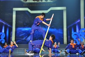 STAR》,引起全場雷動(dòng)歡呼;同德礦業(yè)公司選送的雜技《肩上芭蕾》驚險(xiǎn)刺激,來自北京雜技團(tuán)的年輕演員們?cè)谕榧绨蛏线~起輕盈的舞步,場下觀眾驚呼不已,拍手叫絕;臨汾志強(qiáng)鋼鐵公司的漢子們表演的威風(fēng)鑼鼓《堯天舜日》高亢激昂,令觀眾們心潮澎湃,更激發(fā)了大家開創(chuàng)美好未來的激情和斗志。