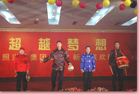 瑞犬凱歌辭舊歲,花豬起舞賀新年。2月6日晚,凱萊大酒店會展中心 內(nèi)歌聲悠揚、掌聲陣陣,“2007年日照興業(yè)集團迎春聯(lián)歡文藝晚會”正在這里舉行。集團領(lǐng)導(dǎo)丁杰、王建國、韓金軍、趙文強、申作華、李麗萱、李春賢以及集團機關(guān)、各分公司的標兵、先進工作者、職工代表近400人一起興致勃勃地觀看了演出。全國政協(xié)委員、民革中央畫院院長、國畫大師宋雨桂應(yīng)邀出席了晚會。市內(nèi)各大銀行、日照日報、日照電視臺等單位的領(lǐng)導(dǎo)、記者、工作人員也觀看演出,歡聚一堂,共慶新年。